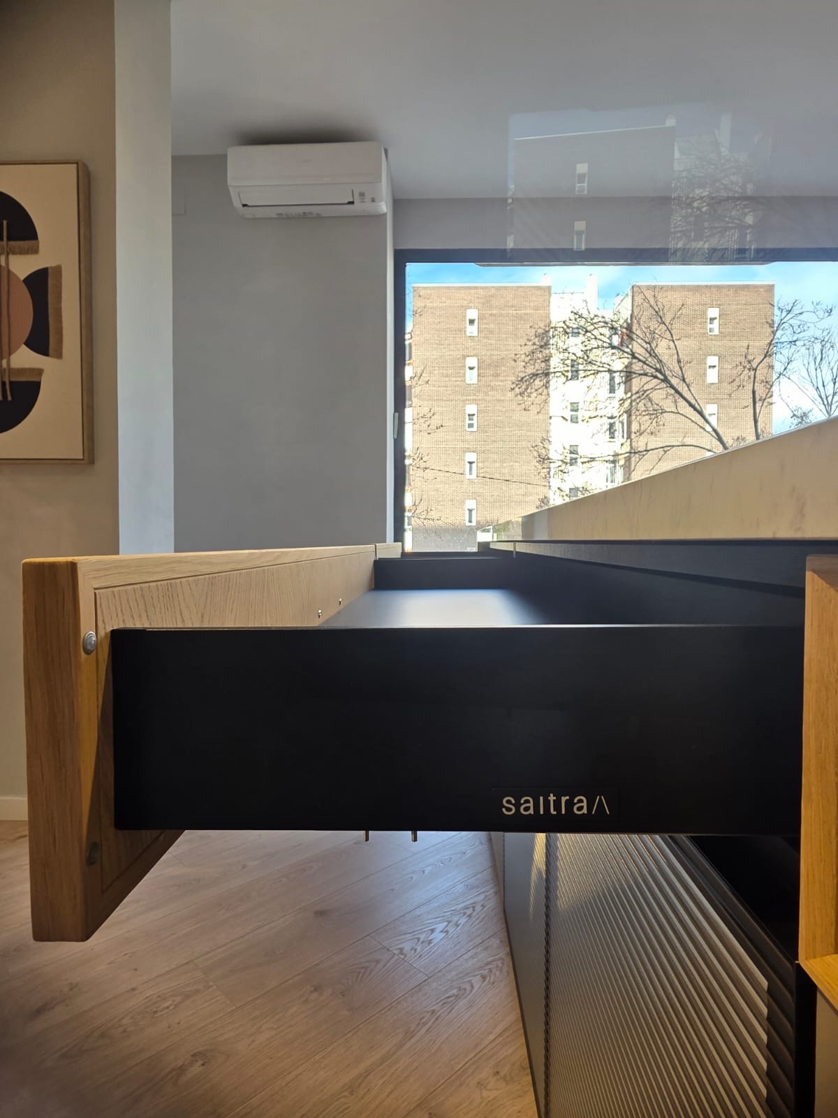 Después de 17 años, Nieves se decidió a dar un cambio de su cocina. Entonces, volvió a confiar en Omar Iglesias, alma máter de Estudio Kiese, distribuidor oficial de SAITRA / HOMING, con quien ya había trabajado en el diseño de la anterior. Nieves siempre ha tenido claro que quería lograr una cocina elegante y atemporal, que no pareciera una cocina, sino una estancia que guste enseñar.